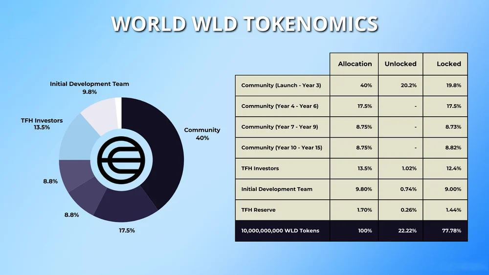 WLD 代币:世界链的 ERC-20 加密货币和治理代币,空投给使用世界币 Orb 证明自己人性的人。