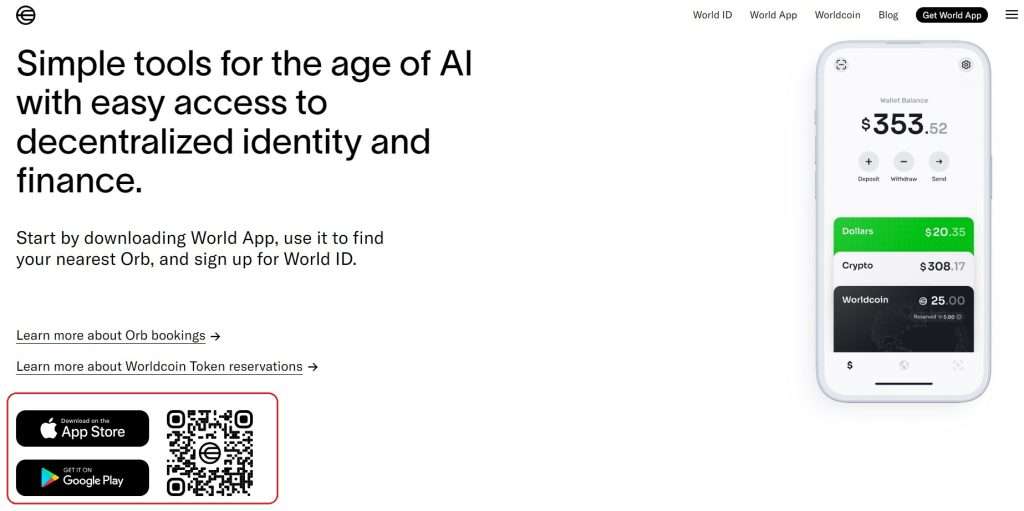 如果你害怕下载了虚假的World App,可以直接透过Worldcoin 官网,选择左上方的「Get World App」来下载。