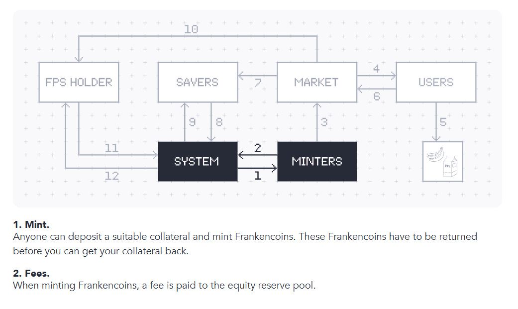 Frankencoin 的设计围绕着双代币模型:ZCHF 作为稳定币,而 FPS 则是其背后的股权/股份代币。