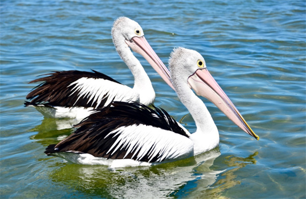 鹈鹕以巨大的喉囊闻名,这个喉囊能像网一样张开,用来捕鱼或储存食物。它们捕鱼时会将整个嘴浸入水中,一网打尽,再把多余的水排出,只留下鱼。这个独特结构使它们成为自然界中最擅长“舀鱼”的高手。
