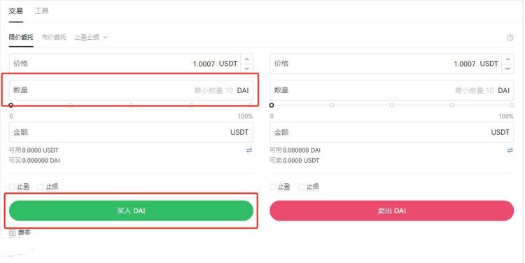 11、在搜索框输入DAI,选择DAI/USDT交易对,可以看到DAI实时行情