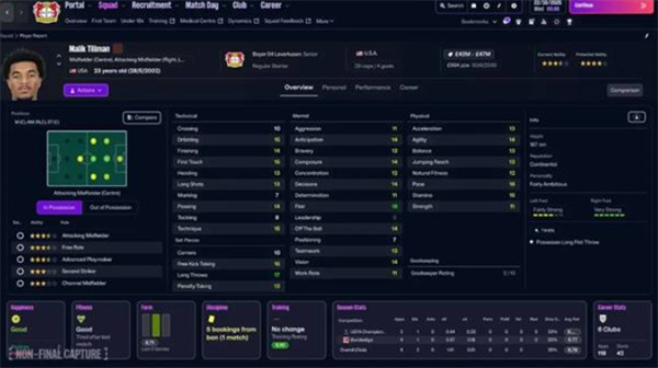 在《FM26》中,玩家接手时需应对换帅与阵容更迭。后防有Quansah与Bade,前场由Tillman与Ben Seghir领衔,攻守兼备。