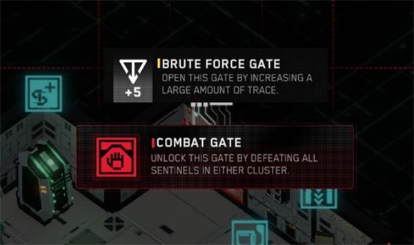 在这个例子里,门扉解锁的条件是“击败房间中所有的敌人”。你也可以“强行打开”门扉,但代价是打开这扇门扉会提升的踪迹值翻五倍。
