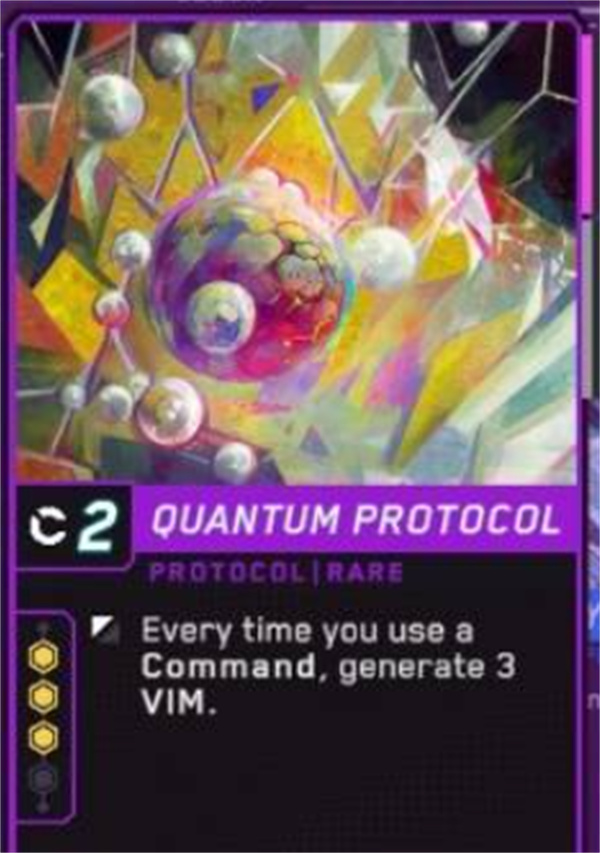 根据图片左侧的3个黄点可知,这张卡牌被打出后,将生成3点VIM。