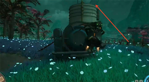 2、观察周围环境,找到一处堆放着集装箱与桶的区域。
