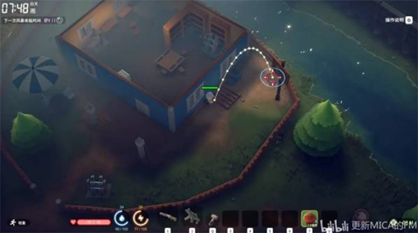 3、身体保持不动,准心继续向右下偏移,左与上辅助线移动至图2中,右与下辅助线位置处,投篮!