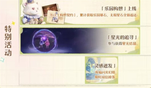 玩家可通过签订「构想契约」累积乐园基石。所有使用的无限星石将在活动中全额返还,用于支持个性化乐园的建设。