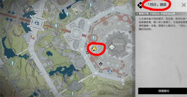 1、前往黎那汐塔地区,传送至【烈日酒馆】。