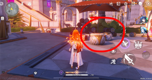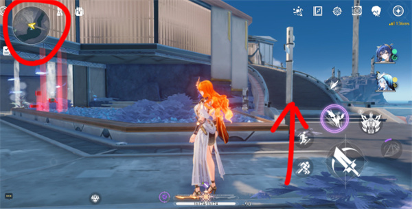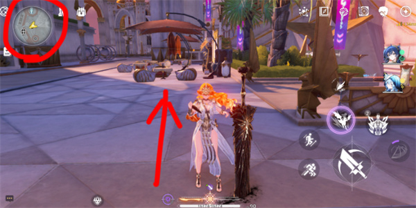 2、从传送点出发,朝小地图北方移动,右侧有楼梯。