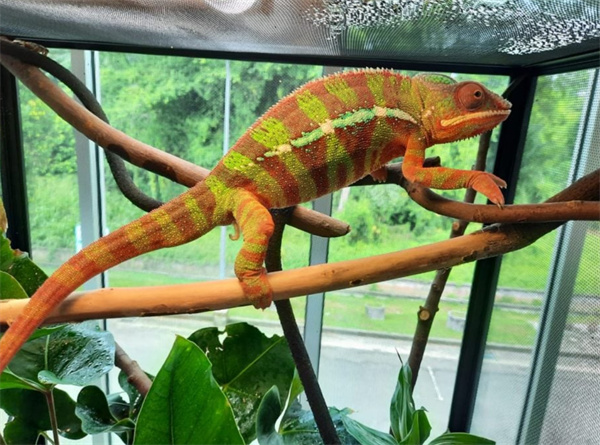 变色龙的变色不仅是为了伪装融入环境、避免天敌或捕猎猎物,还具有调节体温的作用。当环境温度较低时,它会变成较深的颜色,以吸收更多热量;当温度升高时,则会变成浅色,以反射阳光、降低体温。此外,变色龙的体色变化还可用于情绪表达和社交信号,如求偶、示威或防御,体现出它复杂的生理与行为功能。