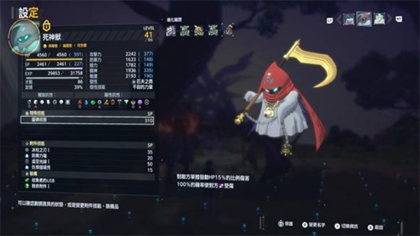 在前期练度不足时,其他队友输出约1000~2000伤害,而死神兽一击能造成数万斩击伤害,对12神、七魔王甚至最终BOSS都能造成有效削血,是推主线时极高性价比的完全体。