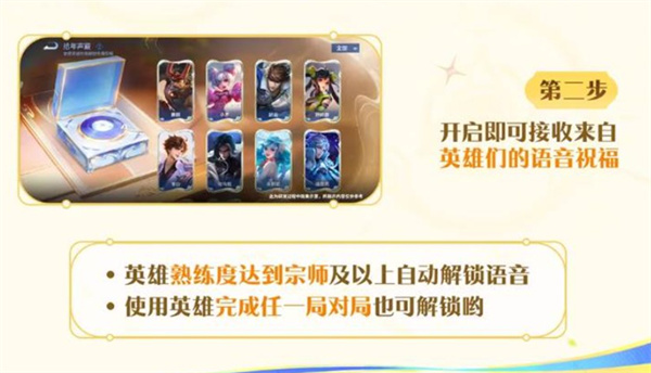 条件二:英雄熟练度达到“宗师”级别及以上,将自动解锁语音。