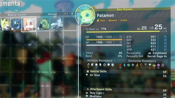 可通过喂食高属性数码兽提升目标数码兽的累积属性。