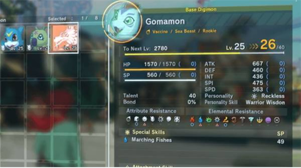 等级决定数码兽的基础战斗力。升级不仅能增强攻防,还能提升累积属性(蓝色数值)。高羁绊数码兽在进化时能继承更多属性,因此应优先培养与强化核心成员。