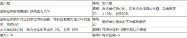技能效果:为攻击力最高的友方单体附加魔力值280%+攻击力320%的护盾,同时附加黯影狂热,伤害提升10%,持续8秒。