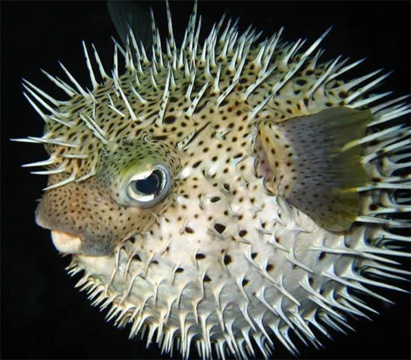 密斑刺鲀的刺是由身体表面的鳞片演变而来,随着进化逐渐特化成坚硬而锐利的棘刺。这些棘刺在平时贴伏于体表,当受到威胁时,刺鲀通过吞水或吞气使身体迅速膨胀,刺便竖立起来,形成防御屏障,从而有效震慑捕食者。这种由鳞片演变而来的刺不仅是刺鲀的重要防御结构,也体现了鱼类在长期进化过程中对环境的适应与生存策略。