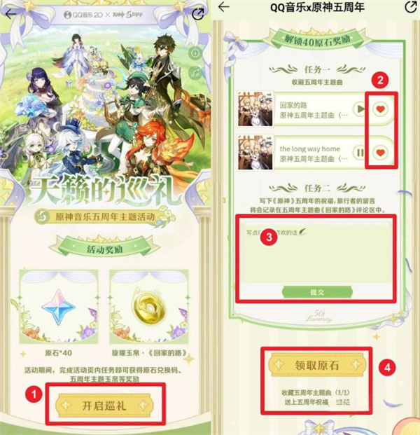 原神天籁的巡礼音乐五周年活动原石领取指南