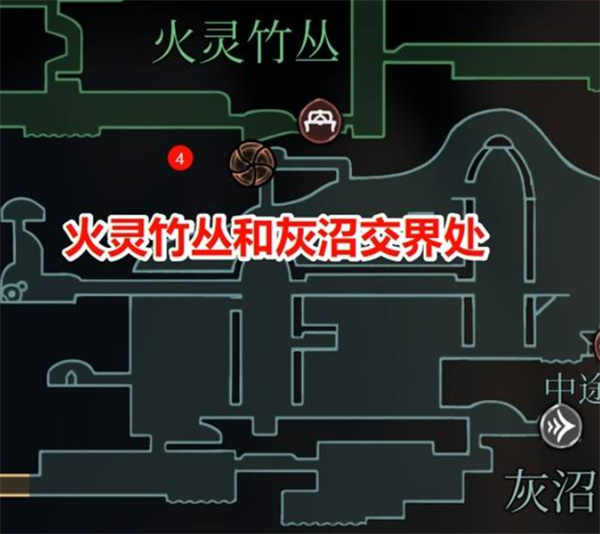 火灵竹丛与灰沼交界,火灵竹丛椅子左下方。
