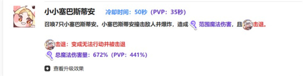 PVP:小小塞巴斯蒂安的击退和控场非常关键,可打乱敌人阵型;但技能冷却较长,需要与队友配合。