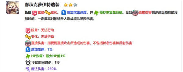 迷人克萝伊:+6%全属性(生命、防御、魔力、暴击),提升综合能力。