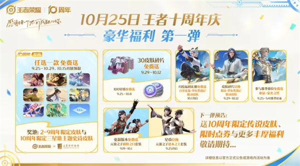 在昨天的第一篇推文中,妲己宝宝提到10月25日王者___周年庆,记得登录游戏领豪华福利哦(一个字)。