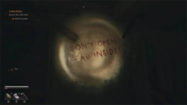 行尸走肉:任务“A New Strain”中,安全屋地下室铁门写有“Don’t Open, Dead Inside”。