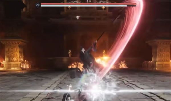 出现五连返红光技能,其中举刀的红光技必须成功弹反,否则会被连打五次。