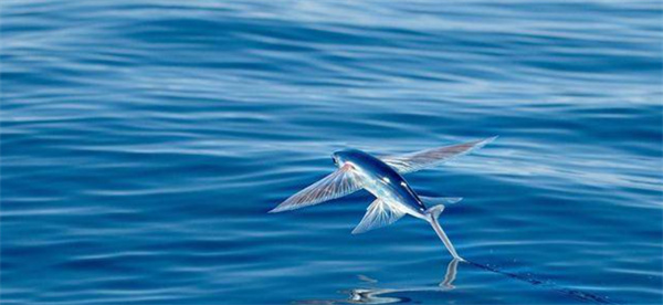 飞鱼具有发达的胸鳍和尾鳍,能够借助高速摆动尾鳍跃出水面,展开胸鳍在空中滑翔。它们的滑翔距离通常可达数十米至数百米,极端情况下可达到约400米。飞鱼通过空中滑翔可以躲避天敌,延长逃生时间,同时节省体力,是其适应海洋环境的一种独特生存策略。