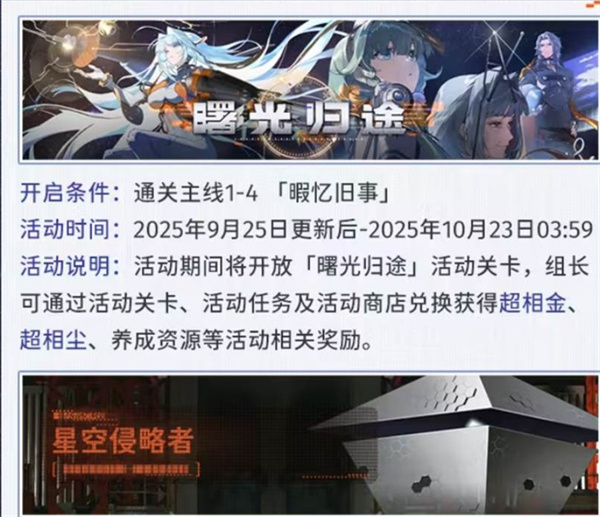 《新月同行》新版本“曙光归途”将在9月25日上线,本次更新包含多个主题活动和玩法。下面小编简单整理了新版本曙光归途的活动要点与获取奖励的方式,希望能够帮助到各位。