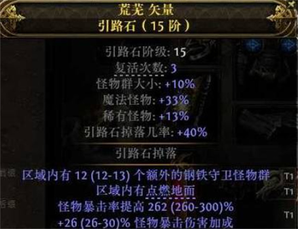 T15地图:指15阶地图。地图分T1-T16,等级越高怪物血量与伤害越高,难度提升。