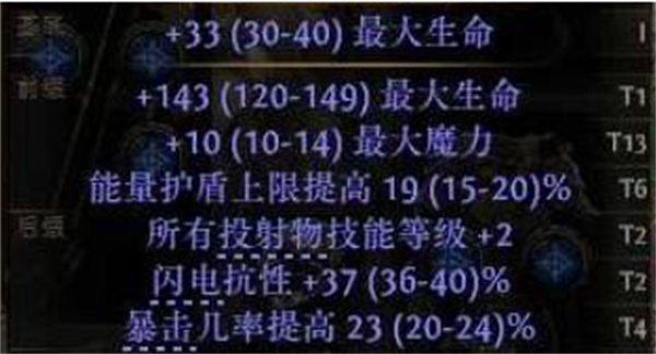 T1词条:装备词缀强度分级,T1为最高等级,属性最好。