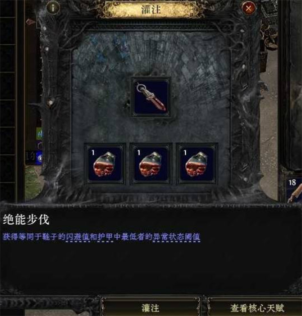 涂油(灌注):给项链增加特殊天赋词缀,效果由不同液化情感组合决定。在游戏中打开天赋盘后,按ALT查看不同天赋需求。