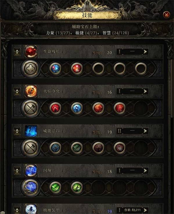 辅助增伤:灵之奉献-库勒马克的统治-布鲁特斯之脑-死亡之舞-牺牲供奉-持续时间延长II。