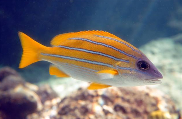 四线笛鲷是一种热带海洋鱼类,体侧最显著的特征就是分布着四条清晰的深色纵纹,因此得名“四线”。这种鱼群居性强,常常成群活动,主要分布在印度洋、太平洋一带的珊瑚礁和岩礁区域。