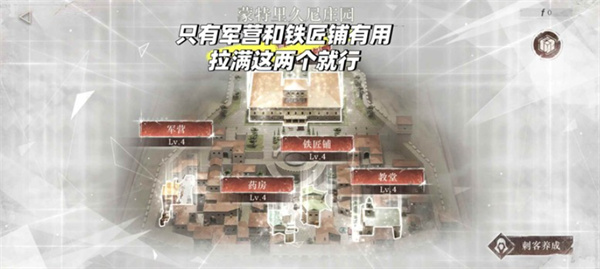 铁匠铺:必升,保证后续战斗和暗杀手段。