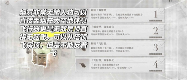 烟雾:可停留在空地不被发现,也能绕过敌人进入暗杀。