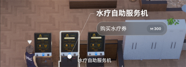 在房间前的水疗自助服务机花费 300 购买【水疗券】。