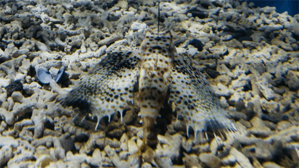 飞角鱼的巨大胸鳍主要有两方面作用:一是用于滑翔。当它受到惊吓或遇到天敌时,会快速摆动尾部冲出水面,再展开巨大的胸鳍,借助气流在水面上方短距离滑翔,从而躲避捕食者。二是用于防御。胸鳍张开时能让身体看起来更大,起到威慑作用,减少被攻击的机会。