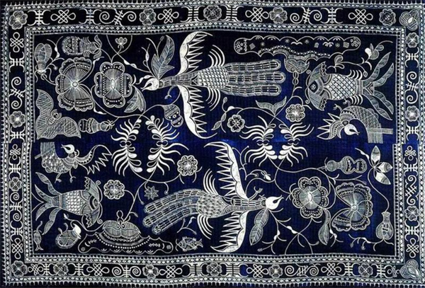 在传统蜡染工艺中,蜡的作用是覆盖在布料的特定区域,形成防染层,从而防止染料渗透。通过反复上蜡、染色和去蜡,可以在布料上形成独特的花纹和层次感。