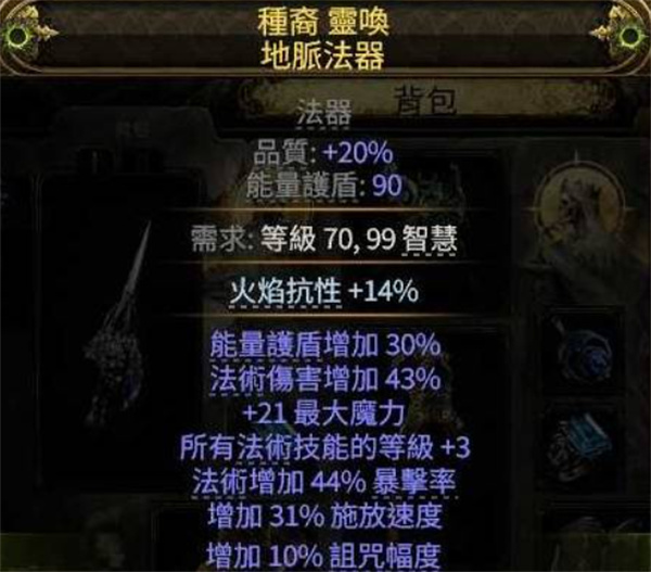 词缀优先:闪电技能等级 > 额外闪电伤害 > 感电几率。