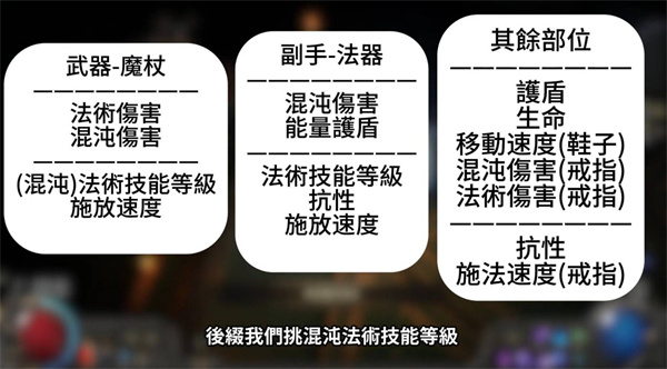 商店刷新后,在搜索栏输入「混沌|法术|移动|抗性」,可快速定位合适装备。