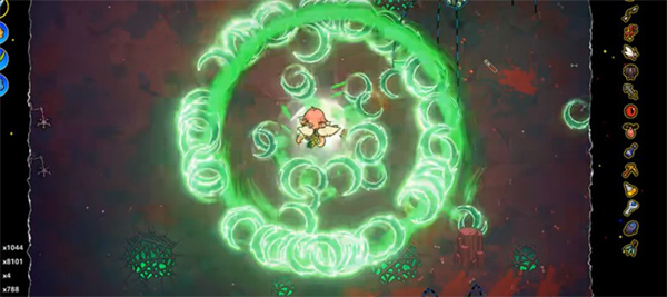 公转效果:让飞刃围绕玩家旋转,扩大范围并提升攻击频率。
