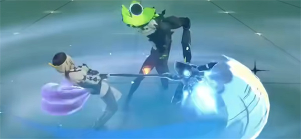 对前方大范围敌人造成冰属性伤害,攻击结束后恢复生命值。
