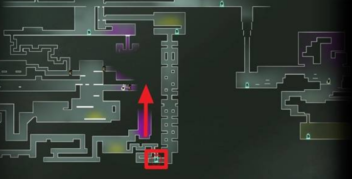 从石碑【升降梯】传送出发,前往箭头指示的紫色区域。之前由于缺乏相应能力,我们只能暂时绕过此处。