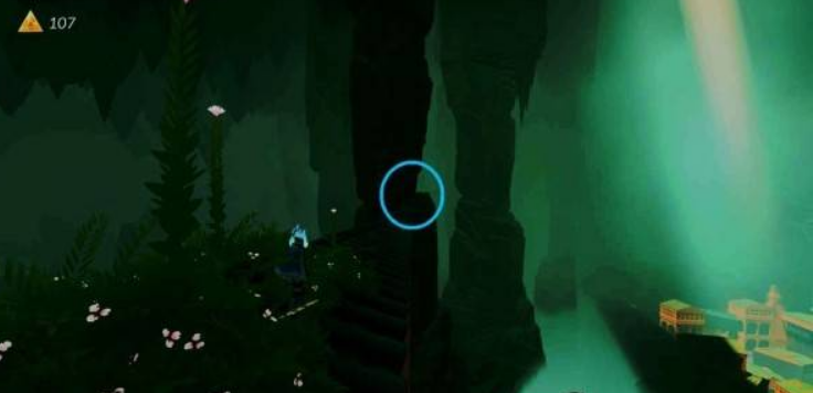 顺着如台阶般的岩石往下跳到最底部,即可找到青蛙。