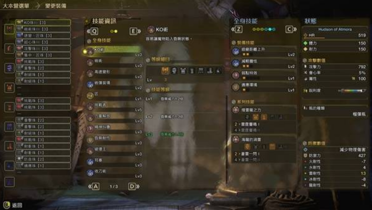 KO术3、炮术3、高速变形3都以击晕怪物为核心,历战怪伤口难出时,晕倒它们能更高效输出。