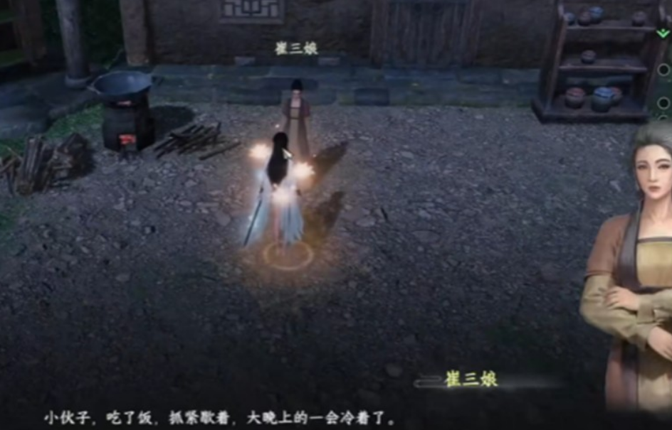 玩家需要先找到崔三娘,和她对话时选择“询问江湖事”触发“探寻真相”支线任务。