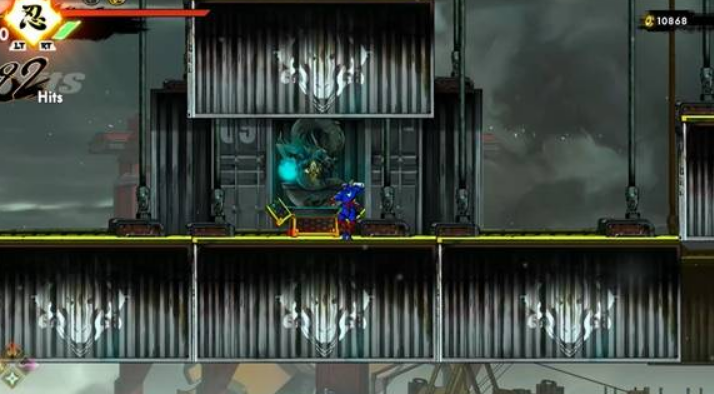 从建筑右侧出口离开,外面出口上层有补给宝箱可拾取,继续右行到悬崖边,跳到移动的集装箱上,沿集装箱跳到第二个建筑。