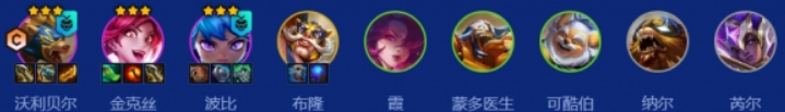 4-2拉8人口启动,经济符文只接受1个。优先搜2星沃利贝尔和2星波比,金克丝1星或2星均可。