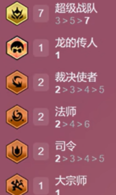7超级战队、2裁决使者、2法师、1龙的传人、2司令、1大宗师